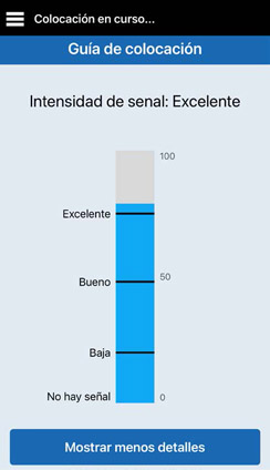 Para conseguir una señal buena o excelente en la guía de colocación, intente mover ligeramente hacia arriba o hacia abajo el transmisor inteligente, o girarlo levemente sobre el sensor. Espere en torno a 1 segundo para que se actualice la guía de colocación entre cada ajuste. Si le resulta útil, toque Mostrar más detalles para ver un valor numérico de la intensidad de la señal.